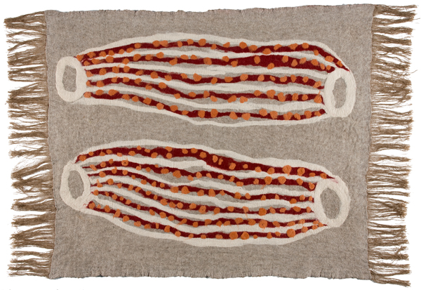 Image detail credit: Nora Holland, Minyma Kutjarra, 2007, dyed felted merino wool and hessian, Janet Holmes à Court Collection